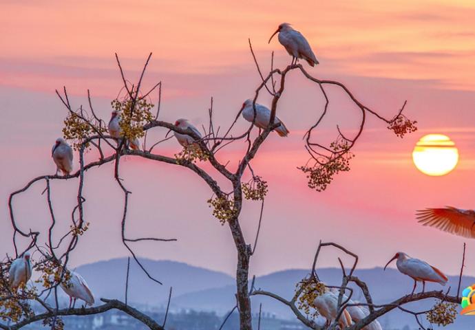 作品名称:朱鹮伴日出