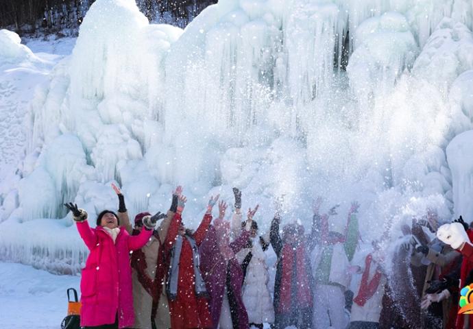 作品名称:冰瀑凝霜处,暖阳照欢颜