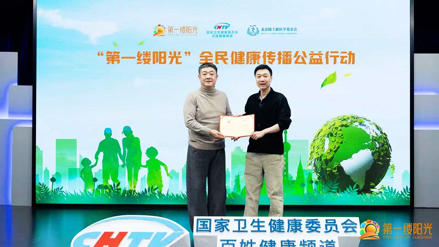 国家卫生健康委百姓健康频道出品人赵磊为高巍颁发了“阳光大使”聘书,希望他在“第一缕阳光”•全民健康传播公益行动中,发挥更好地传播引导作用。(文图:西北旅游文化研究院)