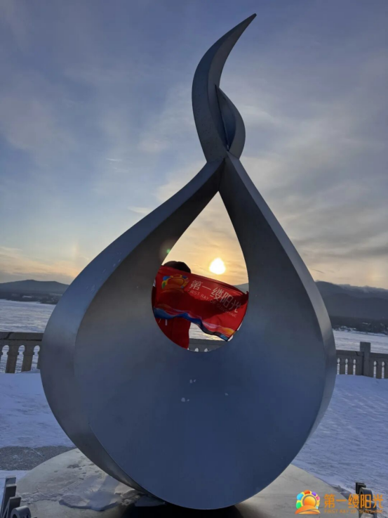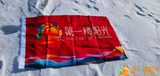 ▲第一缕阳光旗帜展示于松花江冰面