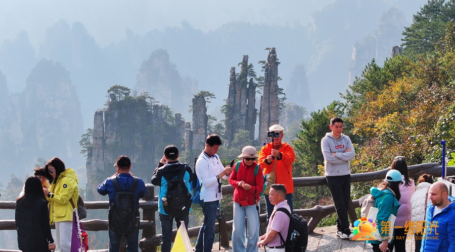 夕照仙山聚客潮