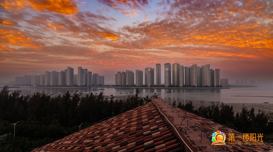 作品名称:老檐新厦共绯霞 摄影者:贾耀明 拍摄地:海南儋州