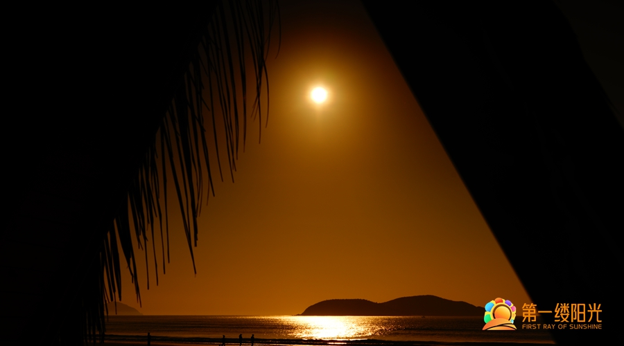 作品名称:三角帘下的金光海 摄影者:秋色连波 拍摄地:海南万宁