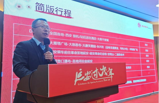 为全面预热春节文旅市场,展示延安冬季旅游独特魅力,1月25日下午,延安市文化和旅游局在古都西安举办2026“延安过大年”文化旅游系列促消费活动媒体通气会。延安市文化和旅游局党组成员、副局长刘海燕,陕西省旅游协会副会长、秘书长王新宇,陕西省旅游协会研学旅游分会秘书长沈飞,延安主要文旅企业代表、西安市60余家重点旅行社代表及30家中央、省级主流媒体记者等逾百人齐聚一堂,共同揭开这场融合红色文化、黄河风情、陕北民俗与冰雪乐趣的春节文旅盛宴的帷幕。